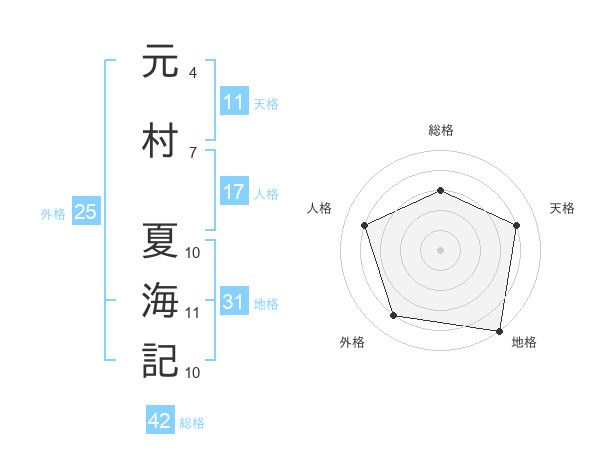 元村 夏海記さんの総格は42画の3点!