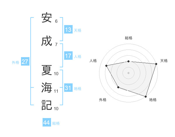 安成 夏海記さんを姓名の画数から五運を鑑定