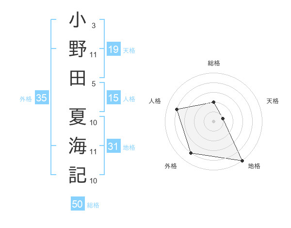 小野田 夏海記さんを姓名の画数から五運を鑑定