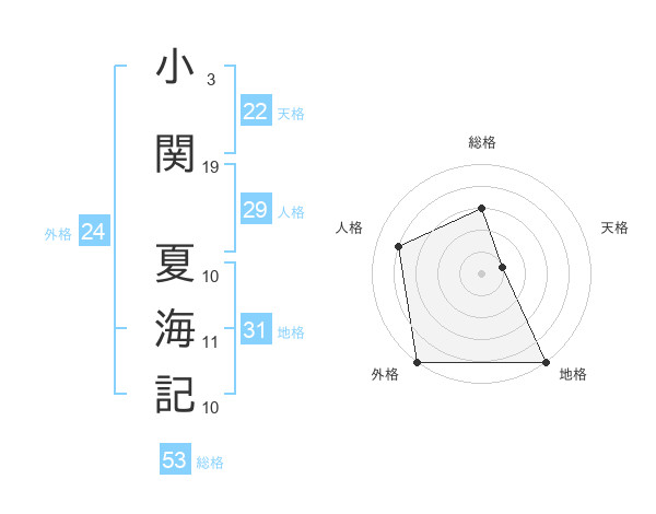 小関 夏海記さんを姓名の画数から五運を鑑定