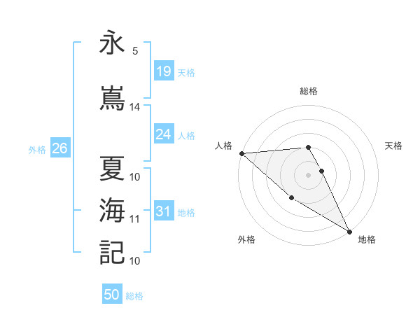 永嶌 夏海記さんを姓名の画数から五運を鑑定