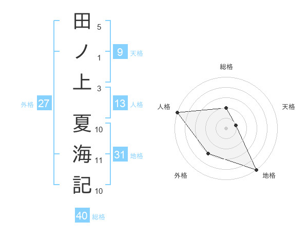 田ノ上 夏海記さんを姓名の画数から五運を鑑定