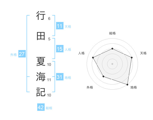 行田 夏海記さんを姓名の画数から五運を鑑定