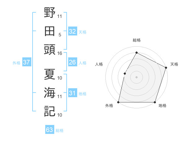 野田頭 夏海記さんを姓名の画数から五運を鑑定