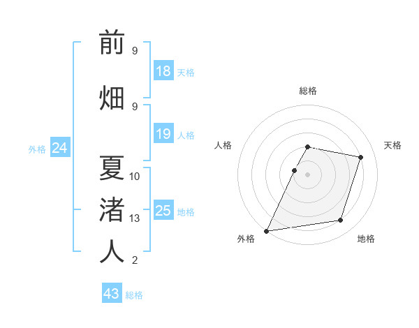 前畑 夏渚人さんの外格は24画の5点!