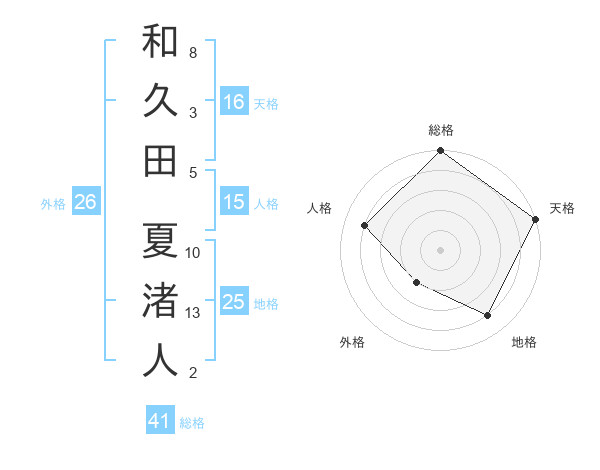 和久田 夏渚人さんを姓名の画数から五運を鑑定