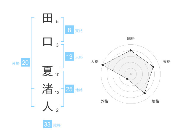 田口 夏渚人さんの天格は8画の4点!