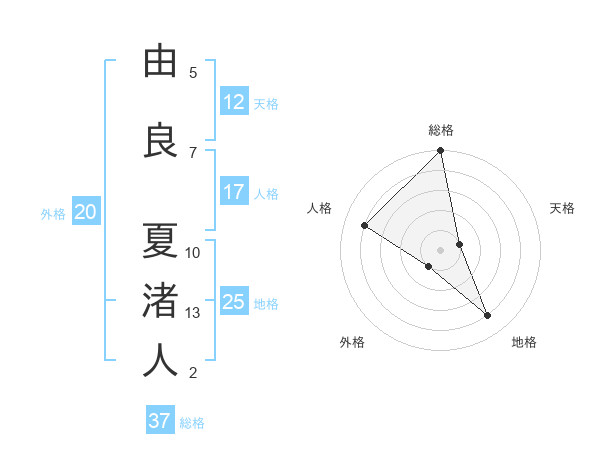 由良 夏渚人さんを姓名の画数から五運を鑑定