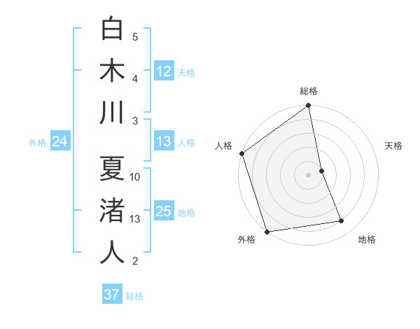 白木川 夏渚人さんの外格は24画の5点!
