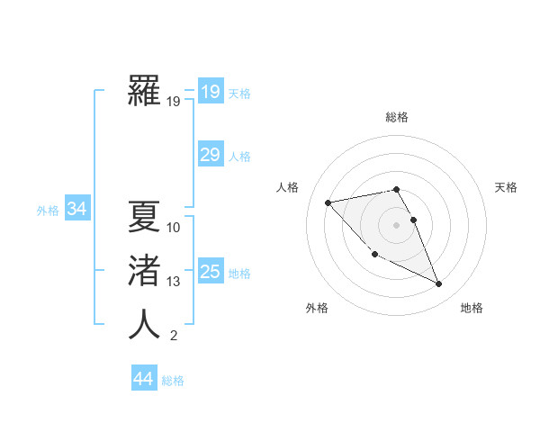 羅 夏渚人さんの総格は44画の2点!
