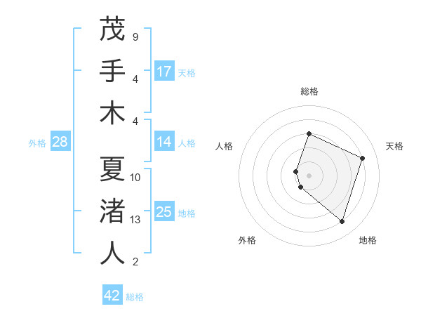 茂手木 夏渚人さんを姓名の画数から五運を鑑定