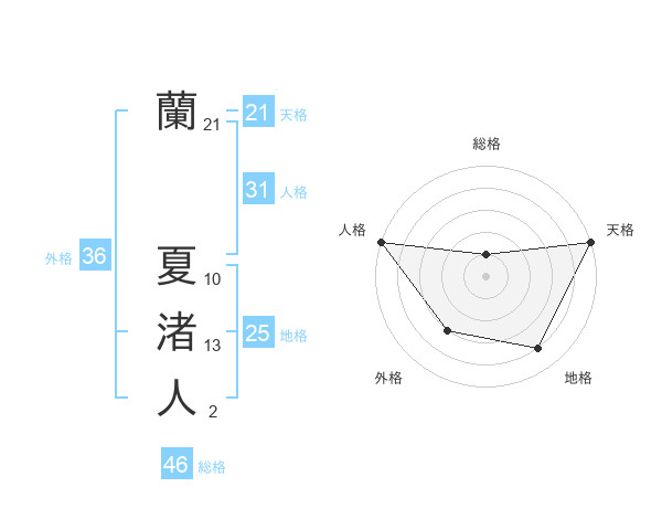 蘭 夏渚人さんの外格は36画の3点!