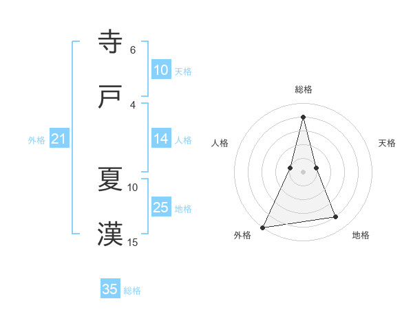 寺戸 夏漢さんの外格は21画の5点!