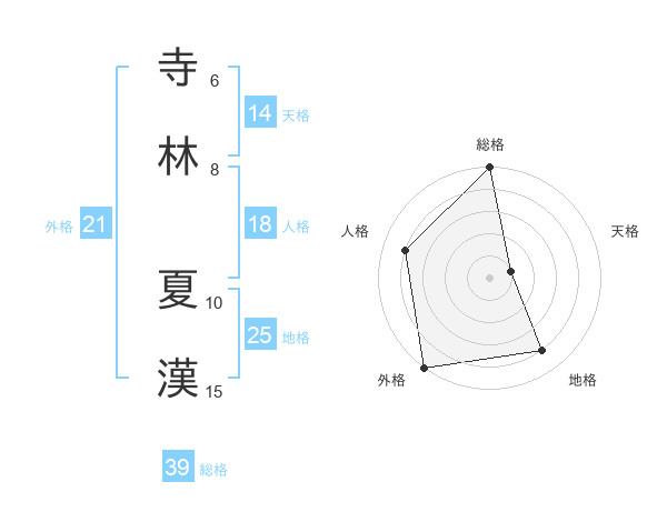 寺林 夏漢さんの外格は21画の5点!