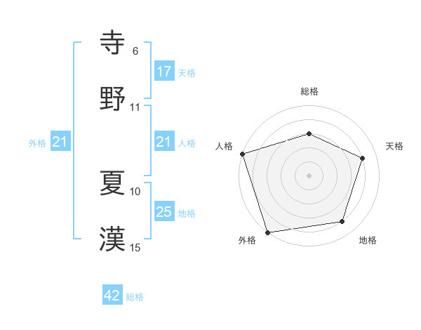 寺野 夏漢さんを姓名の画数から五運を鑑定