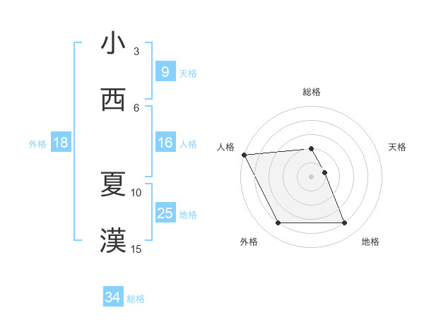 小西 夏漢さんの外格は18画の4点!