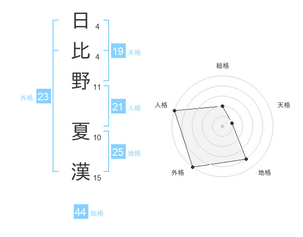 日比野 夏漢さんを姓名の画数から五運を鑑定