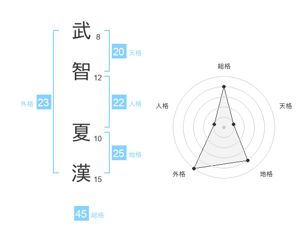 武智 夏漢さんの総格は45画の4点!