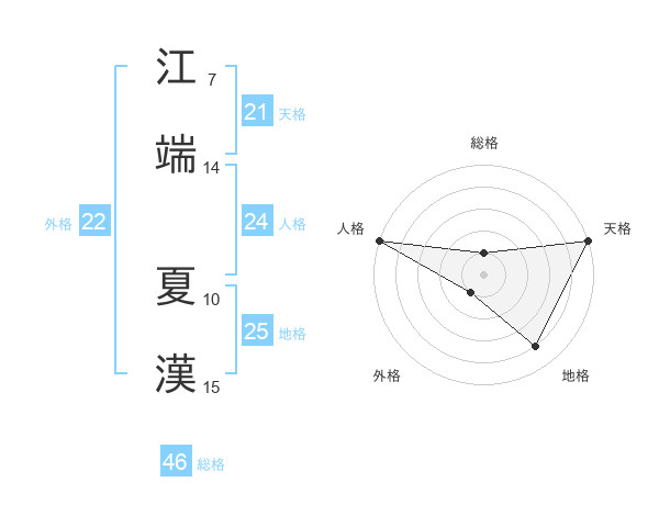 江端 夏漢さんの総格は46画の1点!