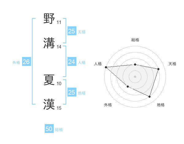 野溝 夏漢さんの総格は50画の2点!