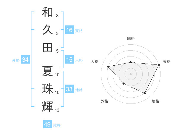 和久田 夏珠輝さんを姓名の画数から五運を鑑定