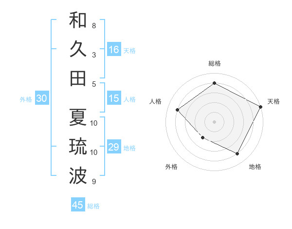 和久田 夏琉波さんを姓名の画数から五運を鑑定