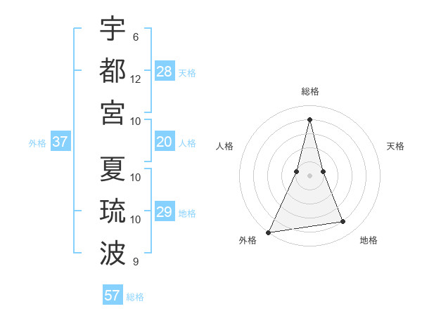 宇都宮 夏琉波さんを姓名の画数から五運を鑑定