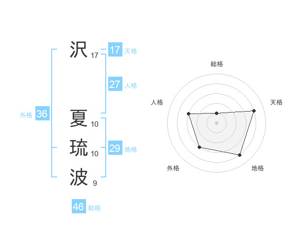 沢 夏琉波さんの天格は17画の4点!