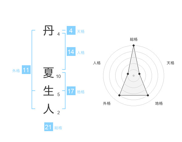 丹 夏生人さんの総格は21画の5点!
