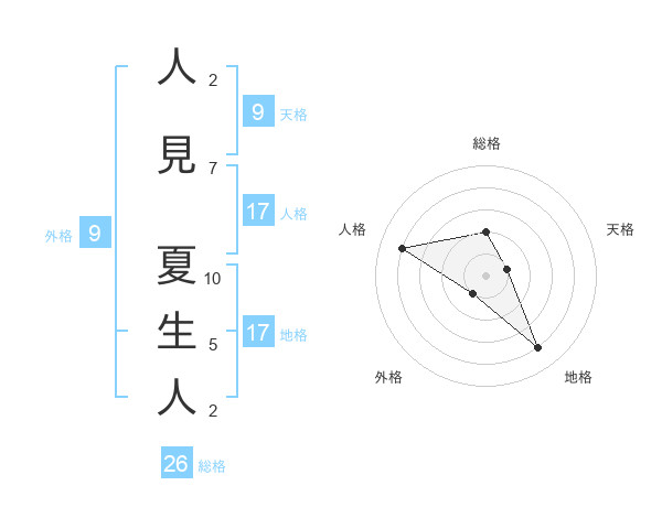 人見 夏生人さんの総格は26画の2点!