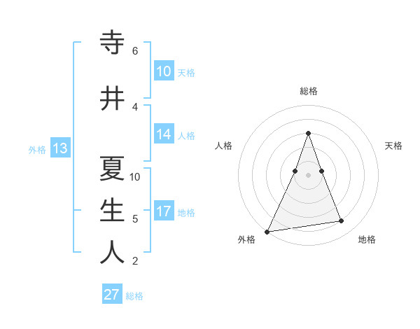 寺井 夏生人さんの外格は13画の5点!