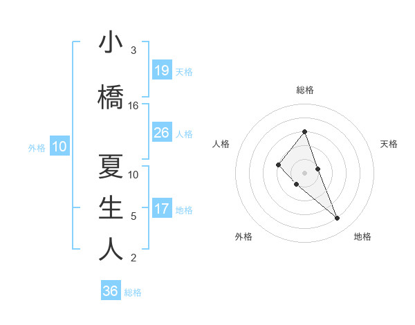 小橋 夏生人さんを姓名の画数から五運を鑑定