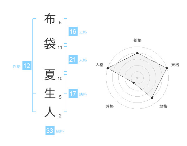 布袋 夏生人さんの総格は33画の4点!