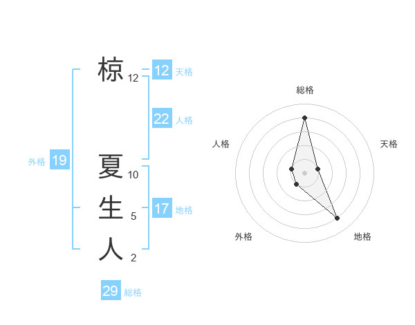 椋 夏生人さんの総格は29画の4点!