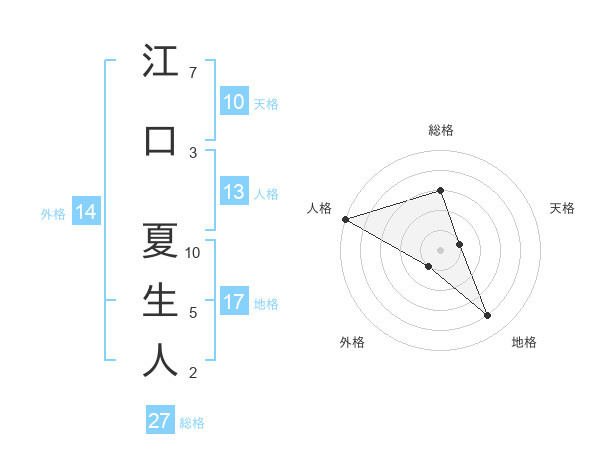 江口 夏生人さんを姓名の画数から五運を鑑定
