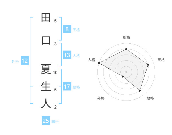田口 夏生人さんを姓名の画数から五運を鑑定