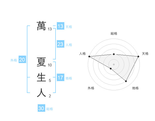 萬 夏生人さんの外格は20画の1点!