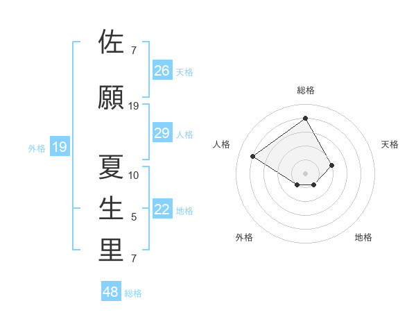 佐願 夏生里さんの総格は48画の4点