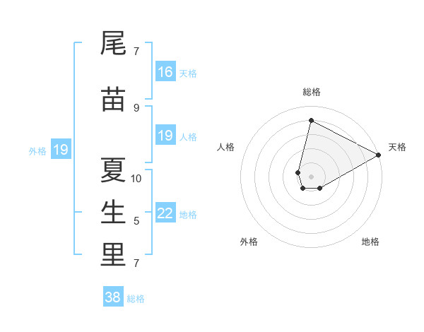 尾苗 夏生里さんを姓名の画数から五運を鑑定