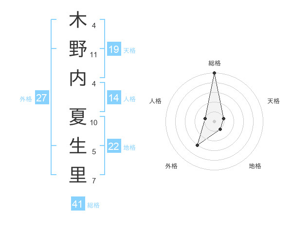 木野内 夏生里さんを姓名の画数から五運を鑑定