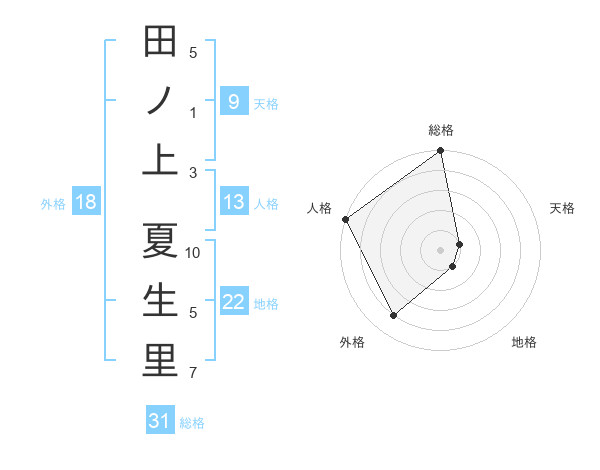 田ノ上 夏生里さんを姓名の画数から五運を鑑定