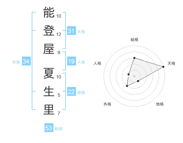 能登屋 夏生里さんの総格は53画の3点!