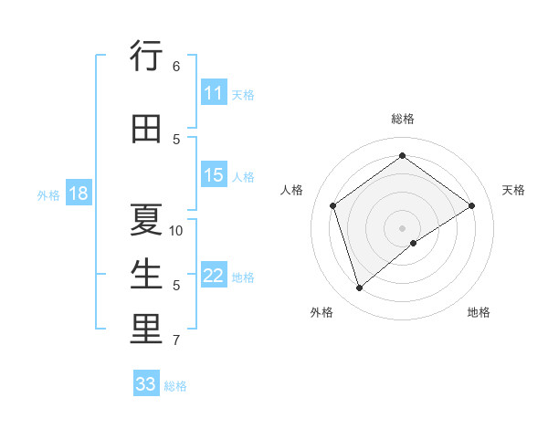 行田 夏生里さんの総格は33画の4点!
