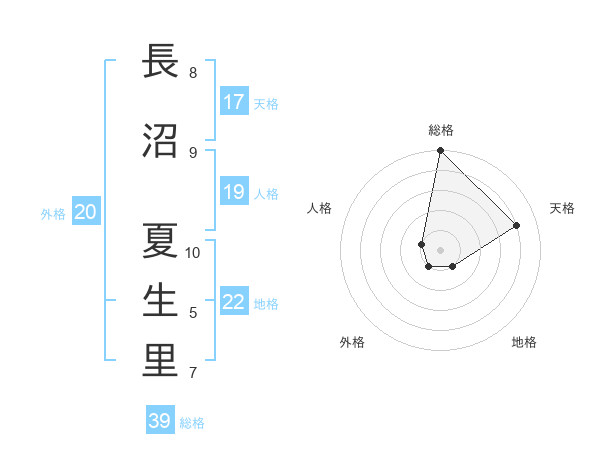 長沼 夏生里さんを姓名の画数から五運を鑑定