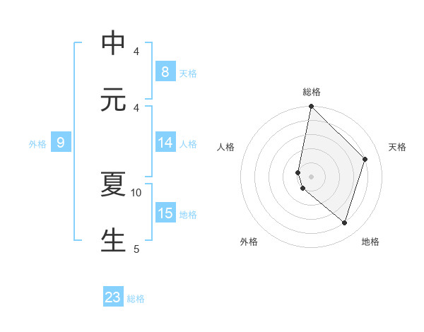 中元 夏生さんの総格は23画の5点!