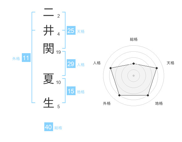 二井関 夏生さんを姓名の画数から五運を鑑定