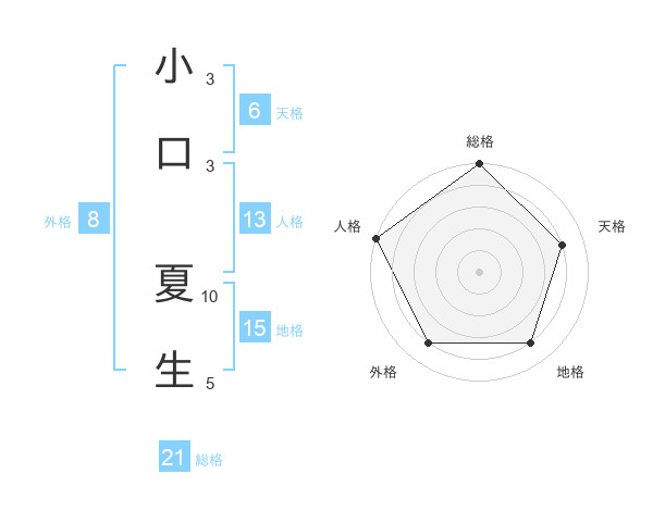 小口 夏生さんの総格は21画の5点!
