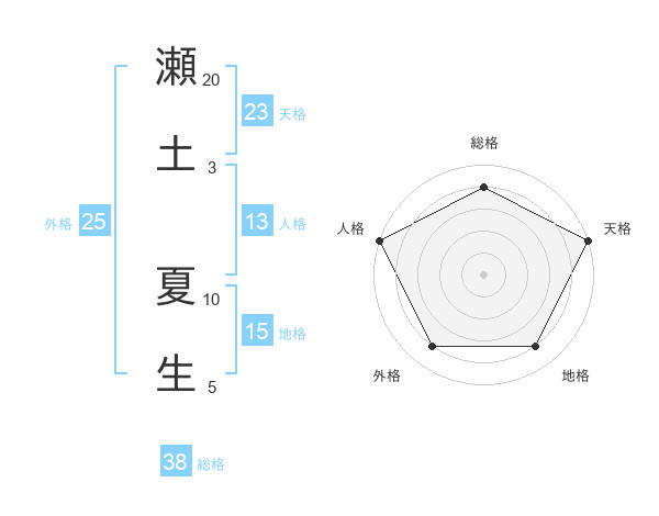 瀬土 夏生さんの総格は38画の4点