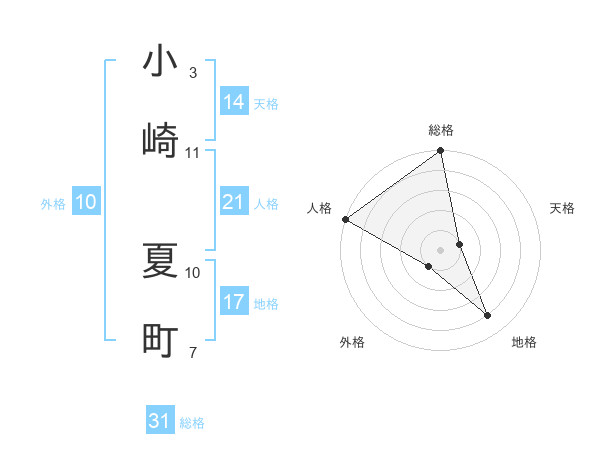 小崎 夏町さんの総格は31画の5点!