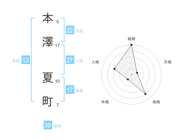 本澤 夏町さんの総格は39画の5点!